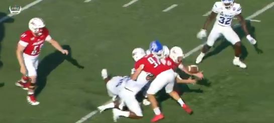 With Memphis up 40-0, the Jags got their first - and only - touchdown of the day. A mishandled snap and what appeared to be some indecisiveness led to two more points for Memphis.